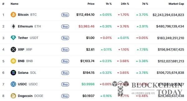 같은 시간 코인마켓캡 기준 해외 비트코인 가격은 전날 같은 시간보다 1.70% 떨어진 11만 2494달러다.
