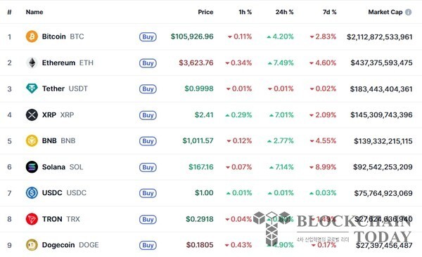 같은 시간 코인마켓캡 기준 해외 비트코인 가격은 전날 같은 시간보다 4.20% 오른 10만 5926달러다. 전날 10만 1000달러에 거래되다가 이날 가격이 상승하며 10만 5000달러를 회복했다.