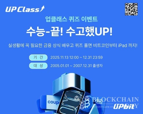 수험생들을 응원하기 위한 다양한 경품도 준비됐다. 만점자 중 추첨을 통해 선정된 10명에게는 아이패드 에어 13을, 80점 이상 달성한 참여자 전원에게는 3만 원 상당의 비트코인 쿠폰을 증정한다. 선착순 5000명과 별도 추첨 5000명, 총 1만 명에게는 편의점 5천 원 쿠폰을 제공한다.