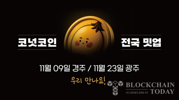[블록체인투데이 박요한 기자] 코넛코인(ConutCoin CONUT) 발행사 ㈜대체불가능회사(대표 이충)가 11월 9일 경주, 11월 23일 광주에서 코넛코인 생태계 확장을 위한 전국 밋업(Meet-Up)을 개최한다.