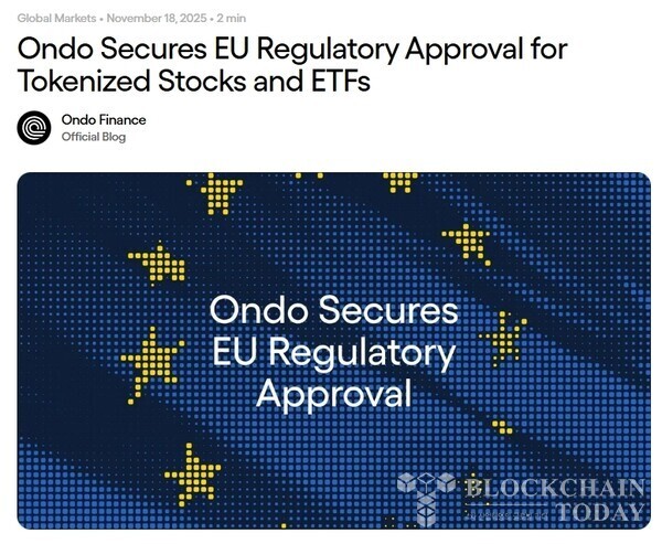19일(현지 시각) 코인텔레그래프에 따르면 온도 글로벌 마켓은 미국 시장에 대한 규제된 온체인 투자 노출을 유럽 투자자들에게 제공할 수 있는 승인을 획득했다고 18일 발표했다. 리히텐슈타인 FMA는 온도에게 EU와 유럽경제지역(EEA) 전역에서 토큰화 주식과 상장지수펀드(ETF)를 출시할 수 있는 권한을 부여했다.