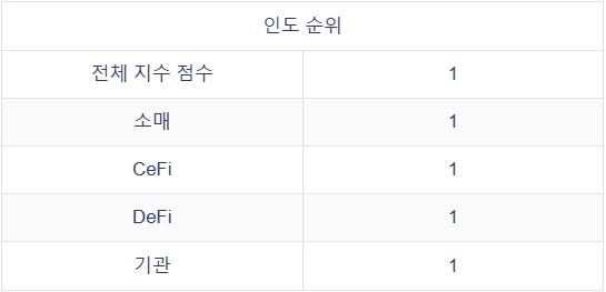 "인도 의 암호화폐 시장은 온체인 거래량 및 2025년 글로벌 채택 지수* 순위 면에서 이 지역의 명확한 선두 주자입니다. 올해 모든 하위 지수에서 1위를 차지한 인도의 암호화폐 시장은 빠르게 성장하고 있으며 매우 복잡합니다. * Bharat Web3 Association 와 같은 조직은 암호화폐를 안전하고 합법적인 가치 이전 방식으로 정상화하고 있습니다. 동시에, 블록체인과 코딩을 실험하는 젊은 학생들부터 소규모 소득 기회를 위해 암호화폐를 사용하는 커뮤니티에 이르기까지 일상 생활에서 풀뿌리 채택이 분명하게 나타나고 있습니다.