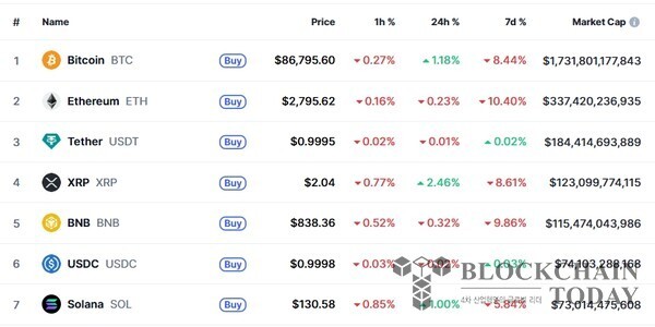 같은 시간 코인마켓캡 기준 해외 비트코인 가격은 전날 같은 시간보다 1.18% 상승한 8만 6795달러를 기록하고 있다.